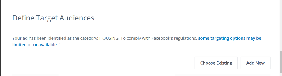 We review your account to determine if your ads are promoting any of the special categories. If we have determined that your account falls into one of these categories, you will see a notification in the Audiences section of your Facebook campaign.