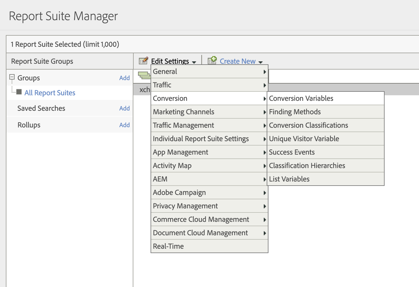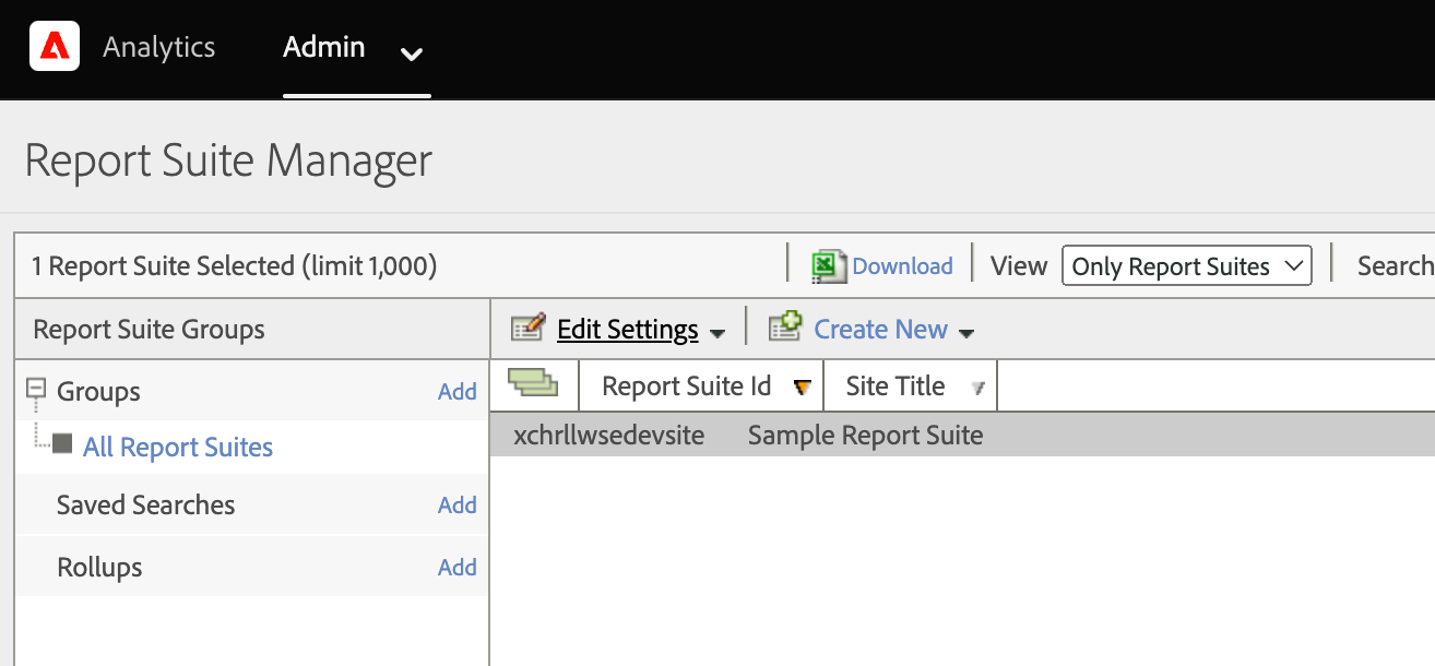 Refer to Adobe’s documentation on creating a report suite if you have not yet created a suite.