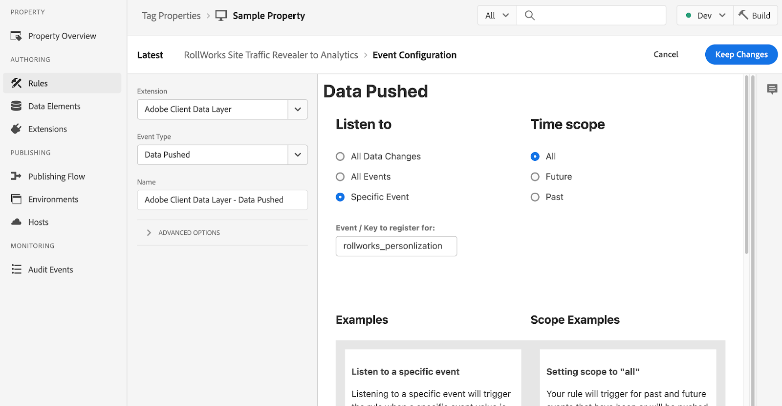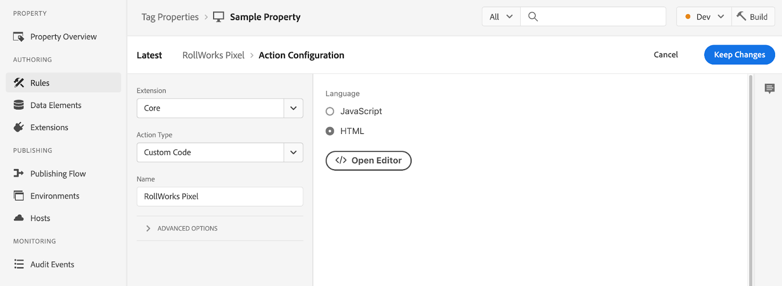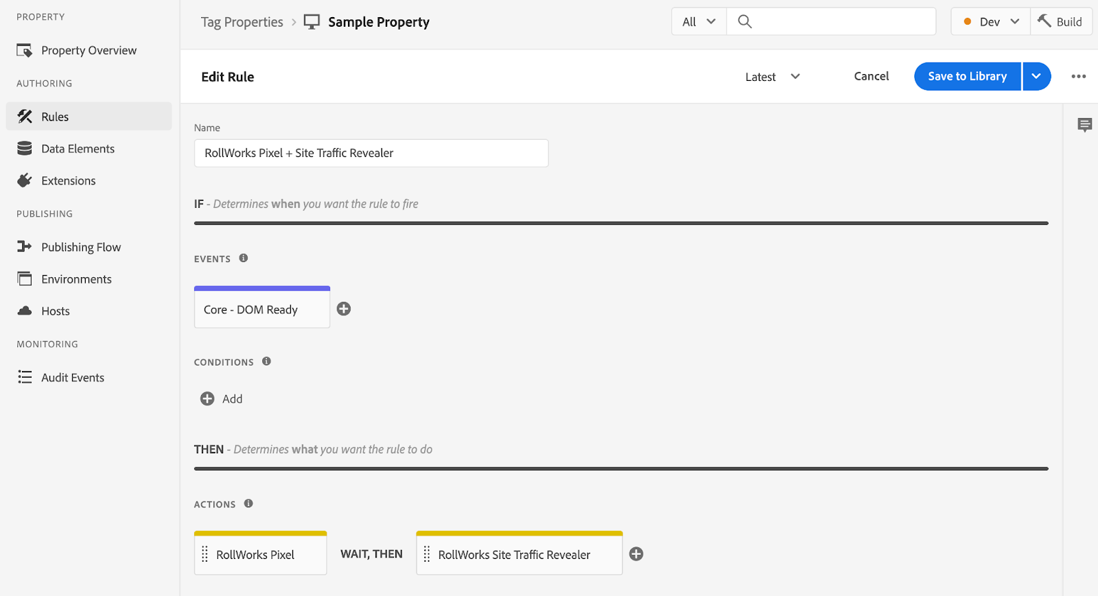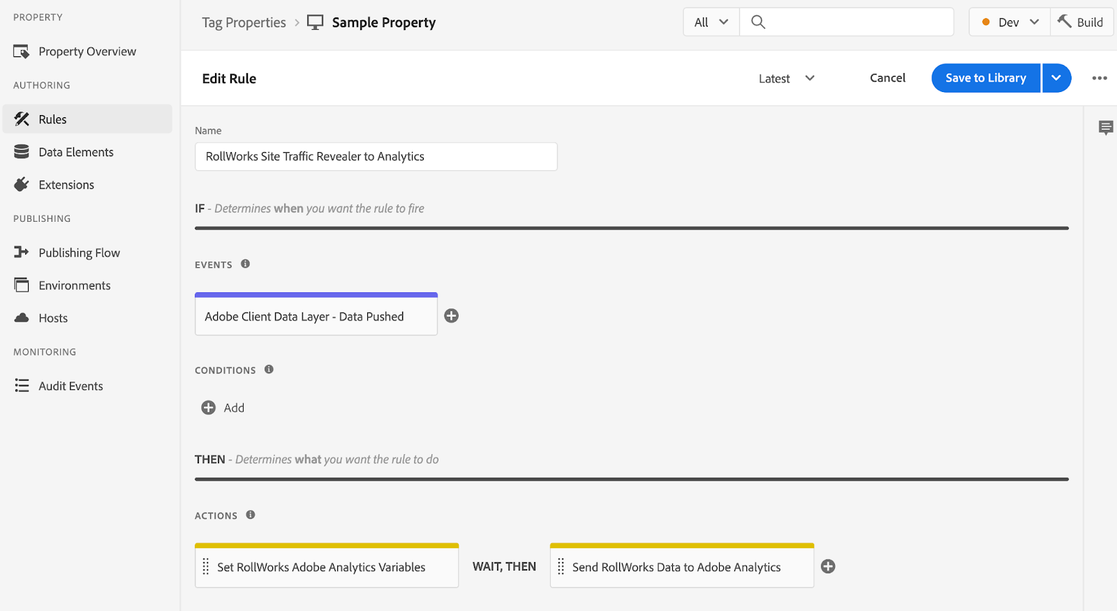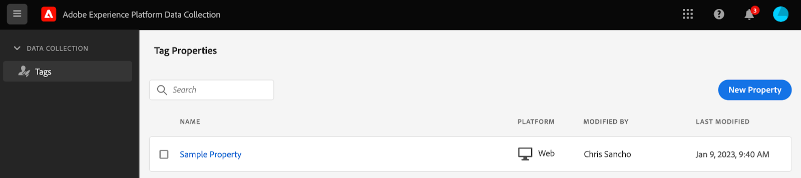 - In Adobe Tags (formerly known as DTM or Launch), within the Adobe Experience Platform Data Collection app, select the property that contains the Tag to update.