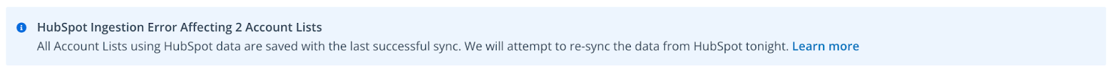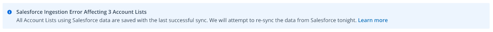 In order to ensure your Account Lists are up to date, we ingest new data from Salesforce, HubSpot, Marketo, or G2 each day. Occasionally, there may be an error when trying to ingest new data from these data sources.