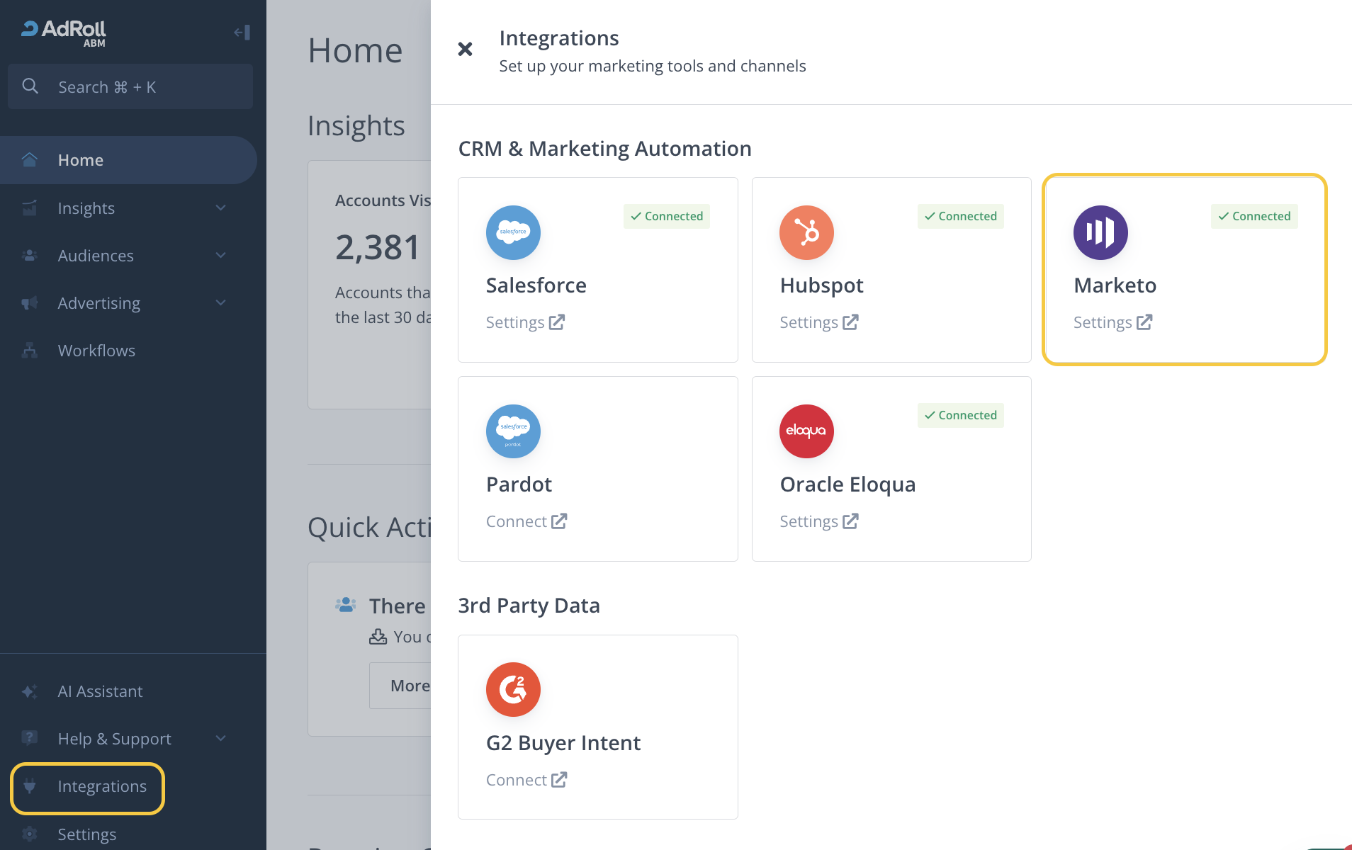Follow the steps below to re-authorize the Marketo Integration with the AdRoll ABM platform: