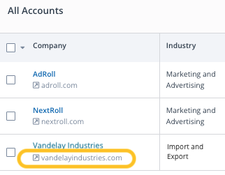 The AdRoll ABM platform uses the field Website in your Salesforce Standard Account object to match the company domain between the AdRoll ABM platform and your Standard Salesforce account record. The most common reasons why we may surface accounts in the Accounts Not In Salesforce card despite the account existing in your CRM are: