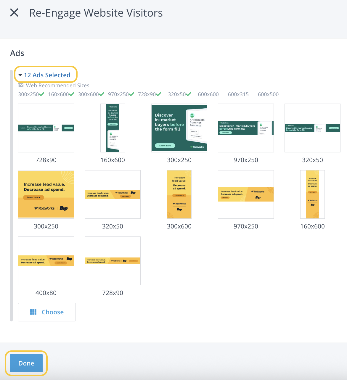 - Mark the checkbox for the ads you want to add to this campaign. Your Selected Ads will be shown on the right side.