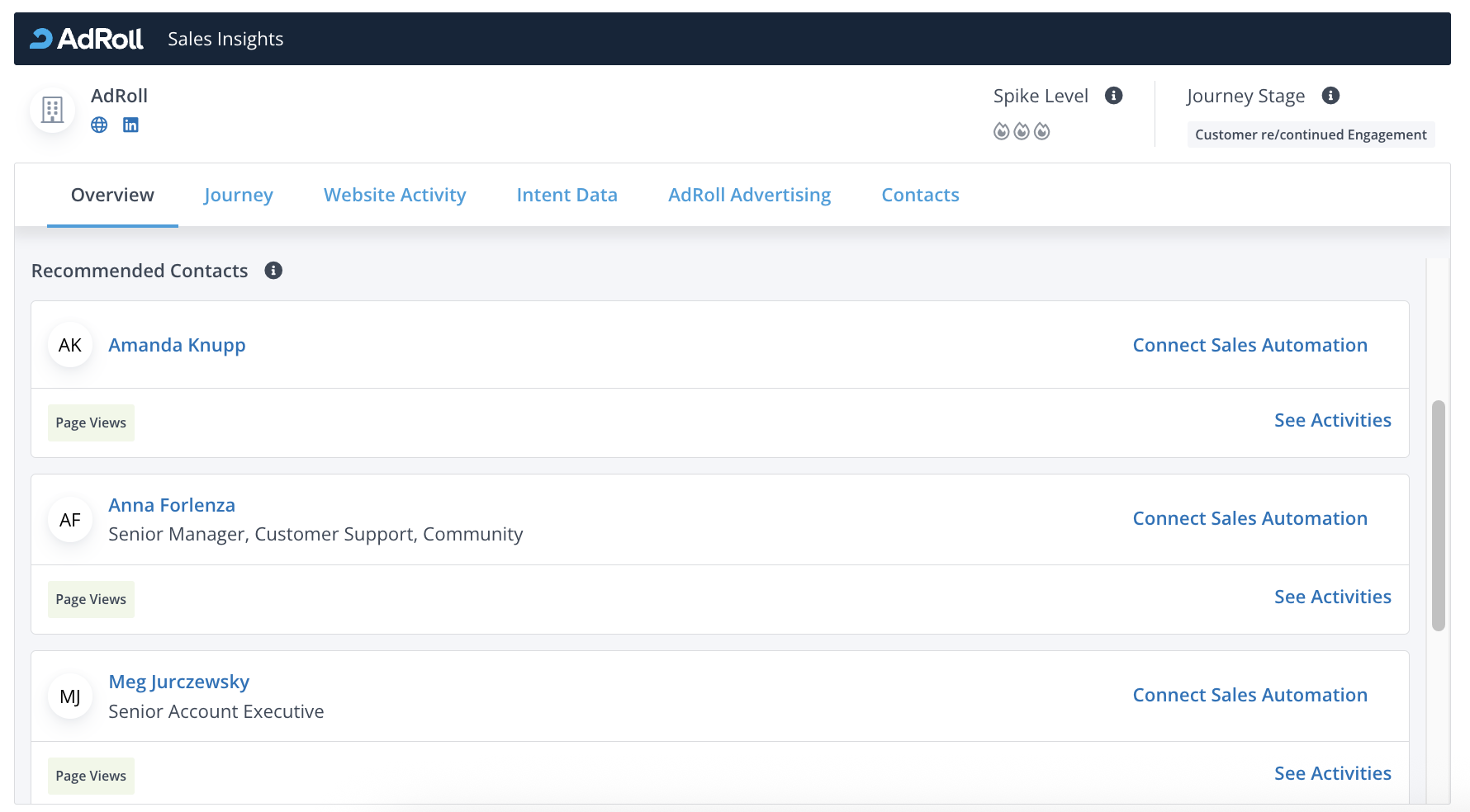 Use case: Marketing can better align with Sales and Ops by making updates to their CRM/MAP based on Hot Contact definition in the AdRoll ABM platform.