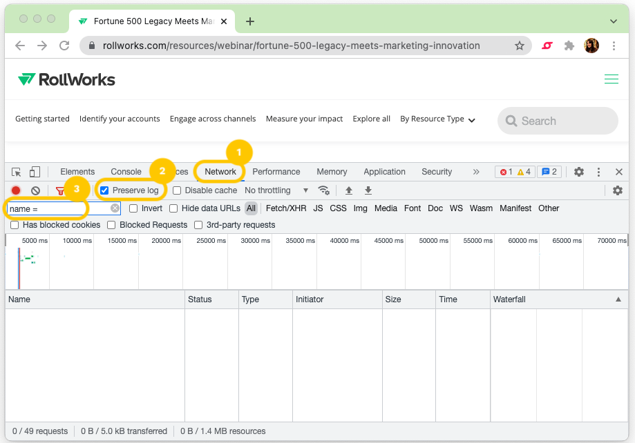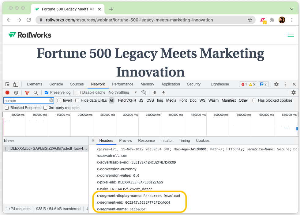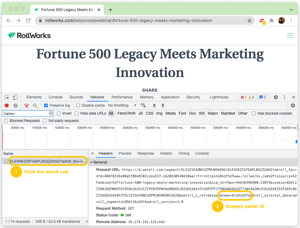 - You will see the network calls under the “Name” column → click the adroll call