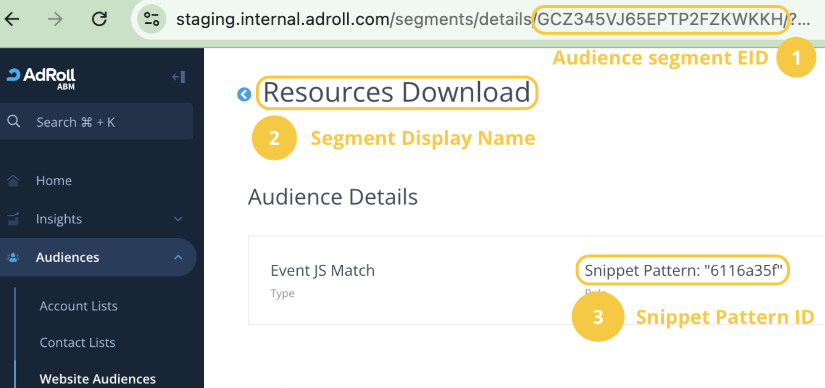 Log in to AdRoll ABM and go to the home page. You will find your Advertisable ID in the URL as follows: