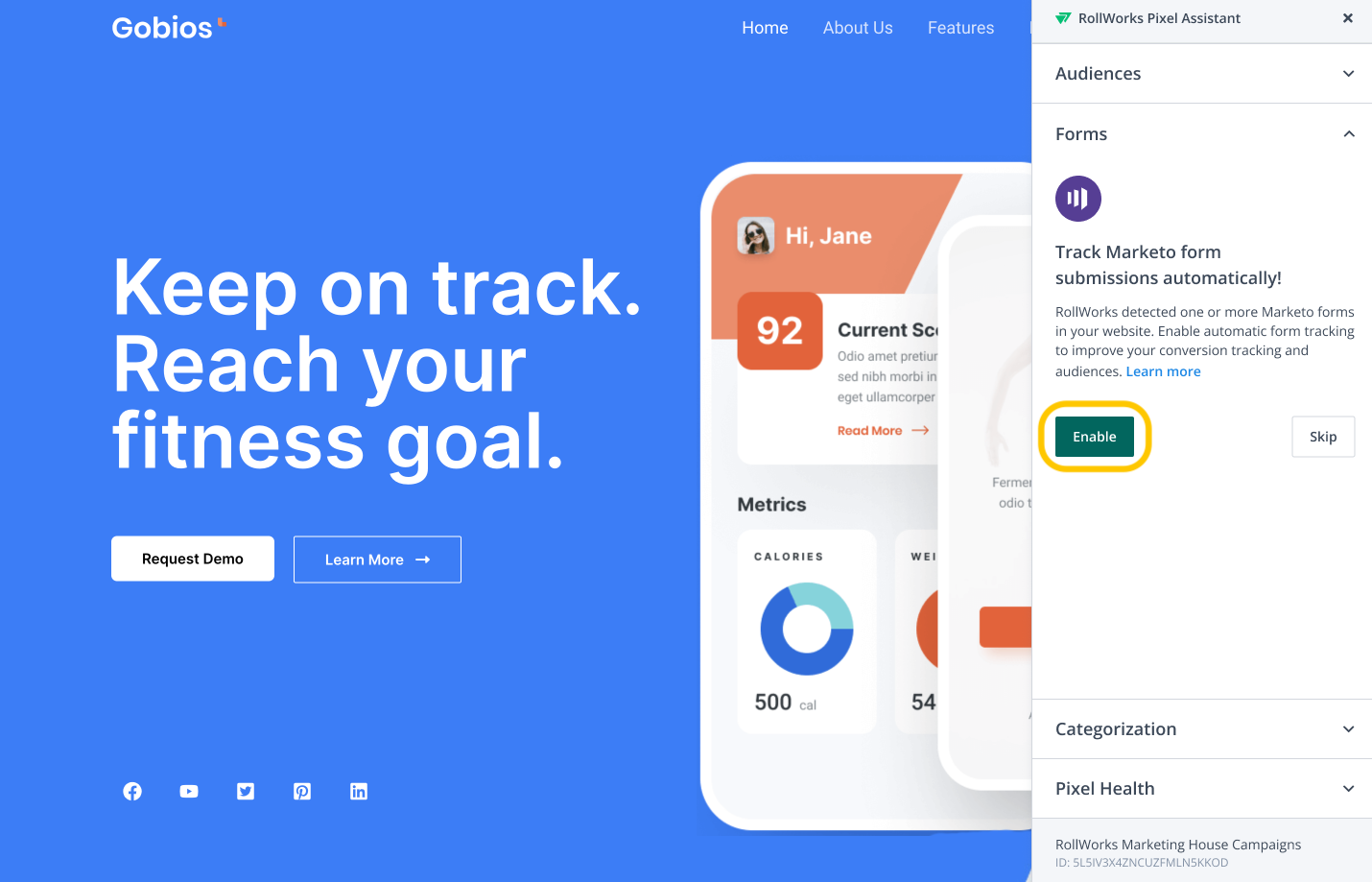 - Any HubSpot/Marketo form fill on your website will be automatically detected by us. This will ensure you don’t miss any conversion data due to misconfiguration of the pixel.