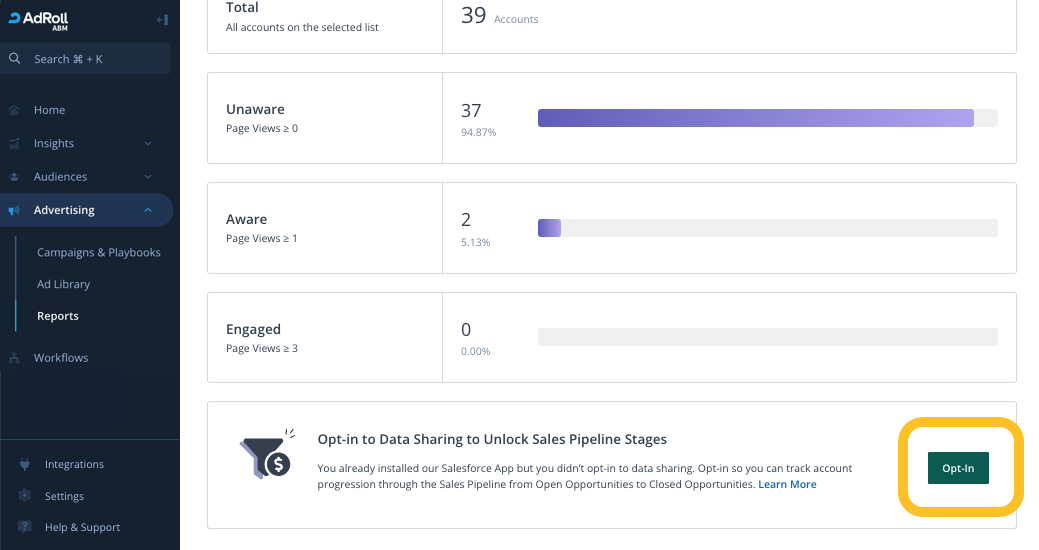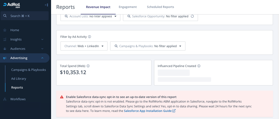 Contact your Salesforce Administrator to opt in to data sharing with the AdRoll ABM platform: