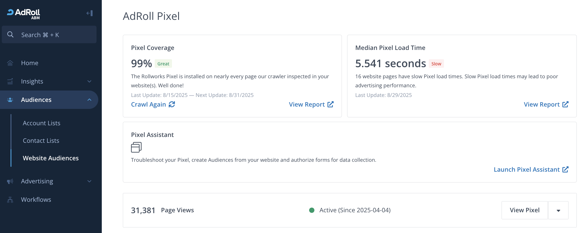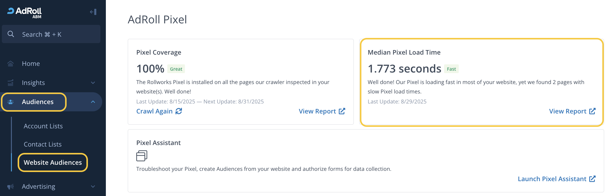 If the pixel load time is slow, it is likely that you may be missing out on tracking and de-anonymizing website visitors, which can lead to poor advertising performance.