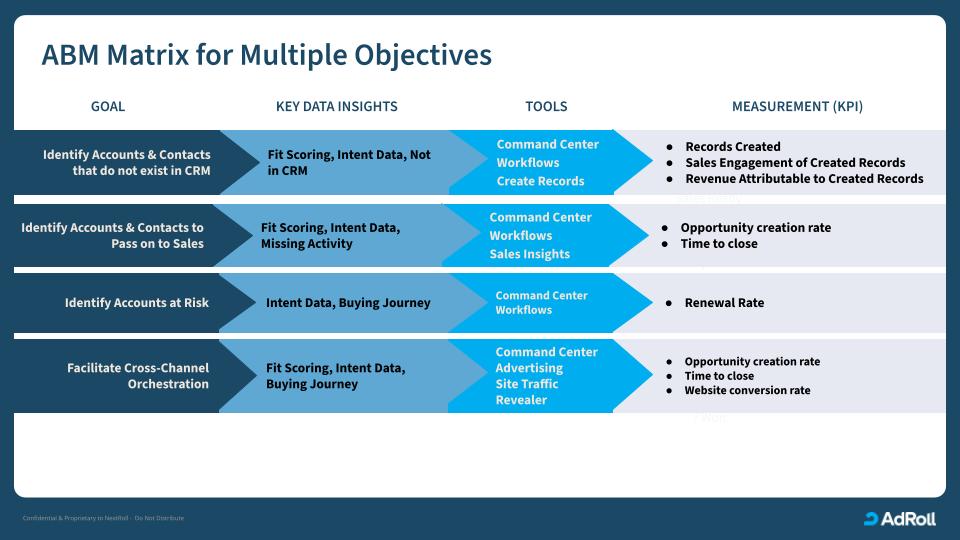 Depending on your business objectives and goals for your ABM program, below is a guide with tactics and KPIs to start measuring the success of your coordinated plays.