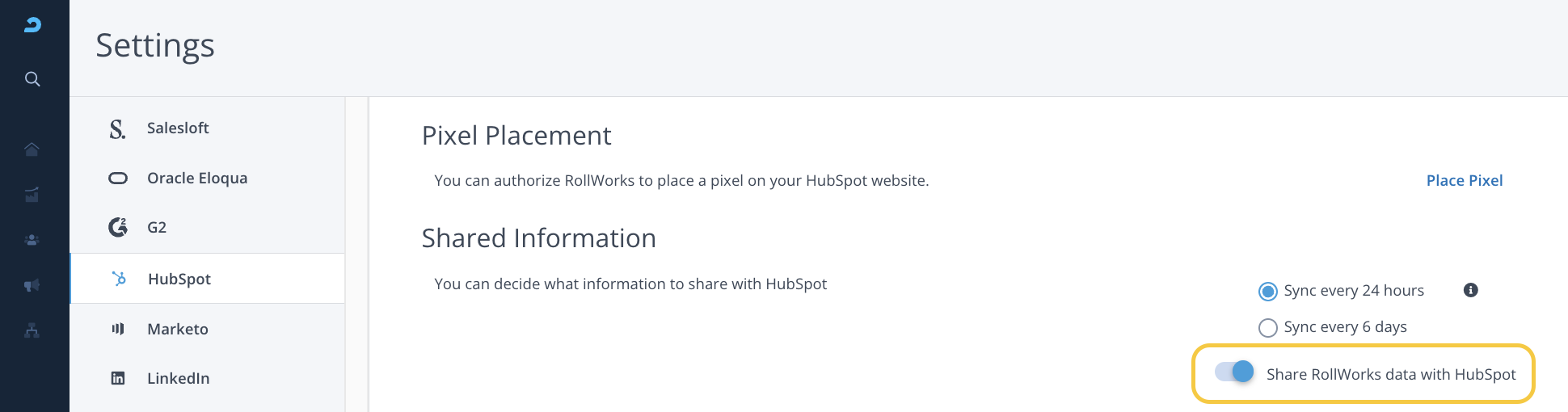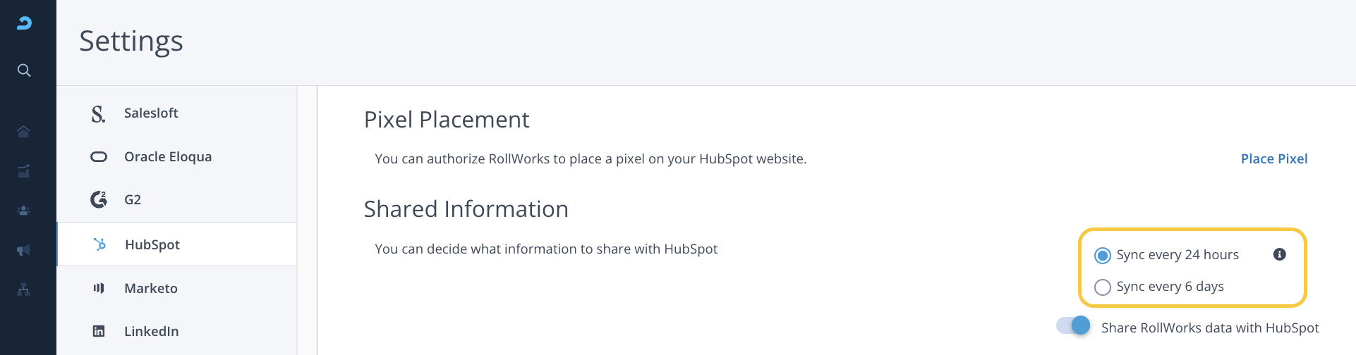 Toggle this button to approve sharing AdRoll data with HubSpot.