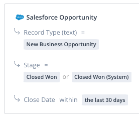 Requires the Salesforce Integratio. We can ingest default and custom fields from standard Salesforce objects. Non-Standard objects and their fields are not available. Attributes available to you will vary based on your own Salesforce configuration. |