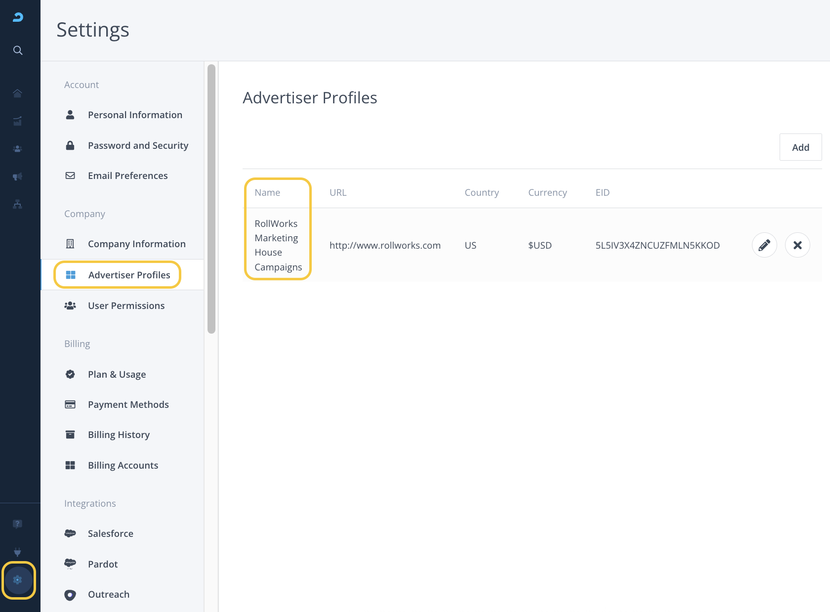 If you don't know the name of each Advertiser Profile, you can find the name of each individual profile by navigating to Settings > Advertiser Profiles.