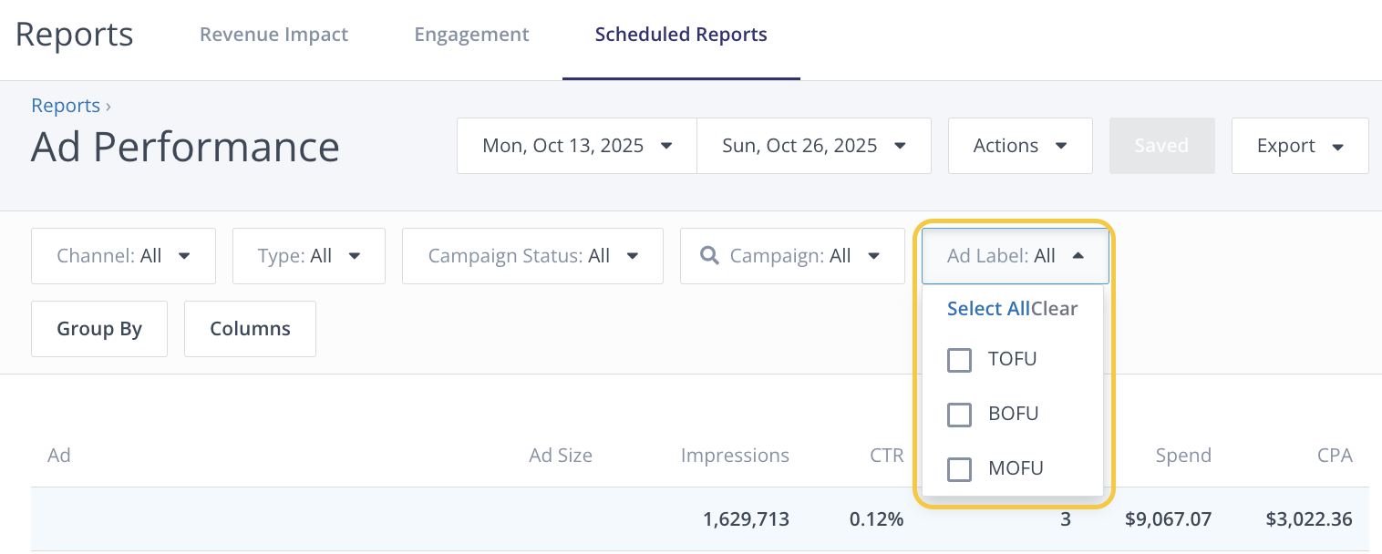 Ad Label reporting is currently in Beta and under development. Please reach out to Customer Support if you have feedback or questions.