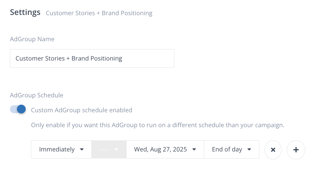 - Scroll down to AdGroup Schedule section.
