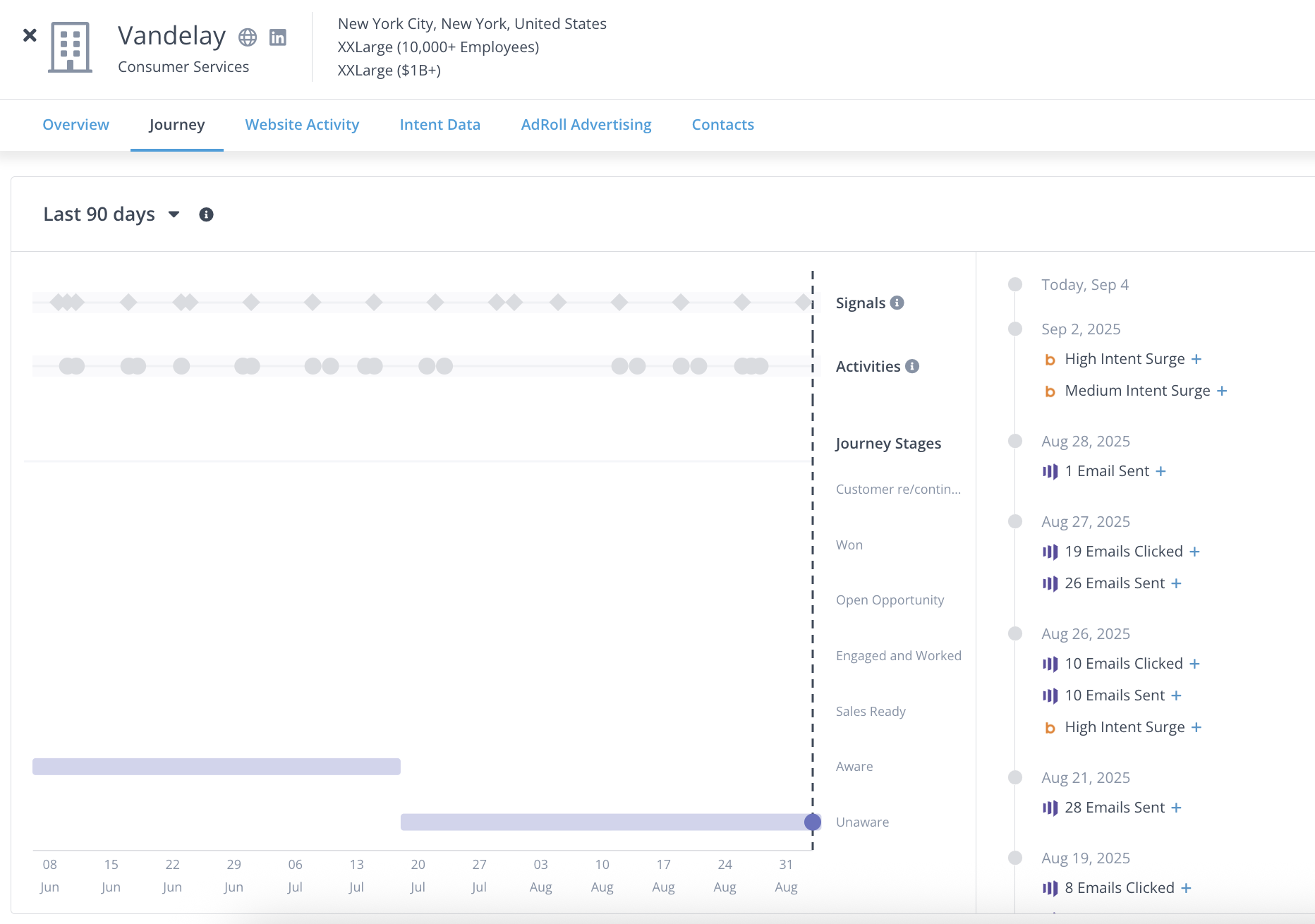 - The accounts may not be targeted if you launch advertising campaigns or playbooks based on Journey Stages.