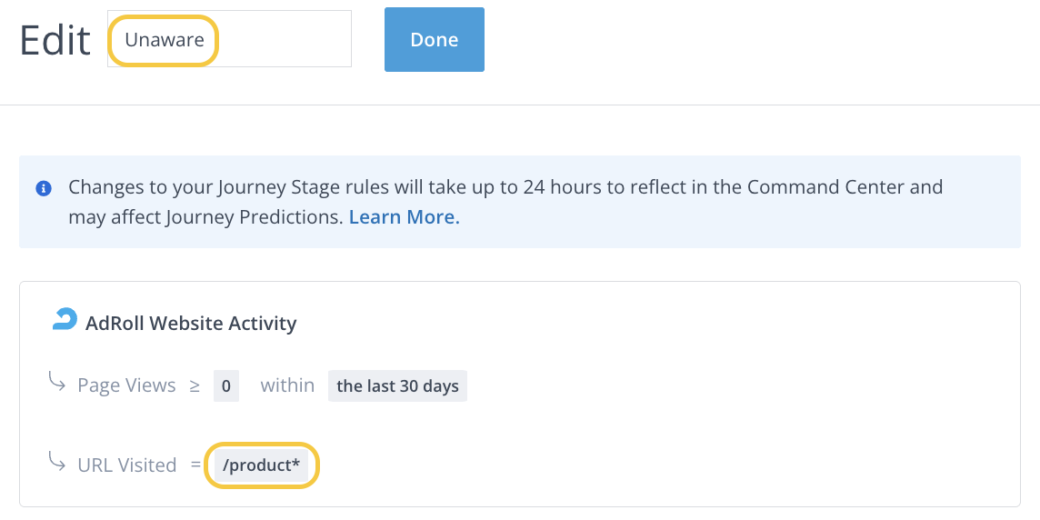Action: Review the Unaware stage to ensure it does not contact logic that is too restrictive, like specific URLs. Remove specific URL rules from your Unaware stage logic.
