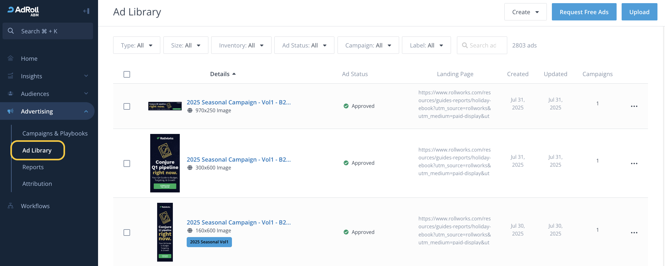 You can Create and auto-Upload Web ads in the AdRoll ABM platform using our AI-Powered ad builder, upload your own files, or make edits. Read on to learn more.