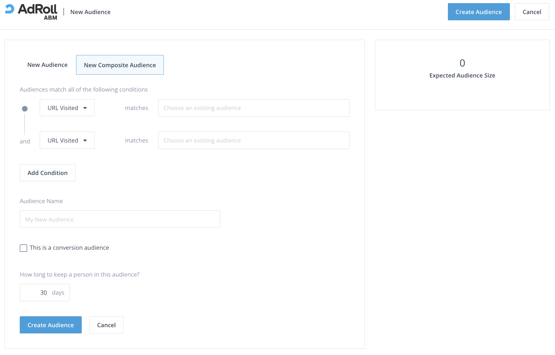 Go to this Composite Website Audience Guide to learn how to create Composite Audiences based on multiple URL-based Audiences. Before you start creating a Composite Audience, you will need to create each individual URL-based Audience following the steps above.