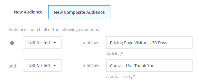 Before you start creating a Composite Website Audience, you will need to first build the individual Audiences that you want to overlay. Once you have created your individual Audiences, follow the steps below to create a Composite Website Audience.