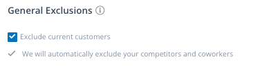 Competitors and coworkers will be automatically excluded. Current customer exclusions are optional. You can manually select if you want to exclude current customers by editing the Campaign/Playbook settings: |
