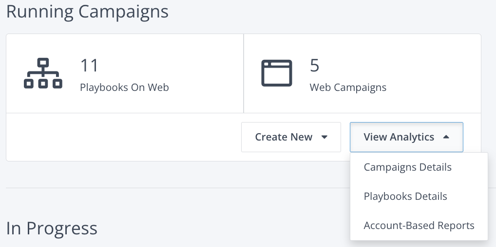 You will also be able to drill into campaign metrics and reporting to see how your programs are performing under the view analytics tab. This will bring you to the campaign analytics page within our AdRoll ABM platform. If you would like to expand your program, you can also select the 'Create New' tab to launch additional campaigns and playbooks.