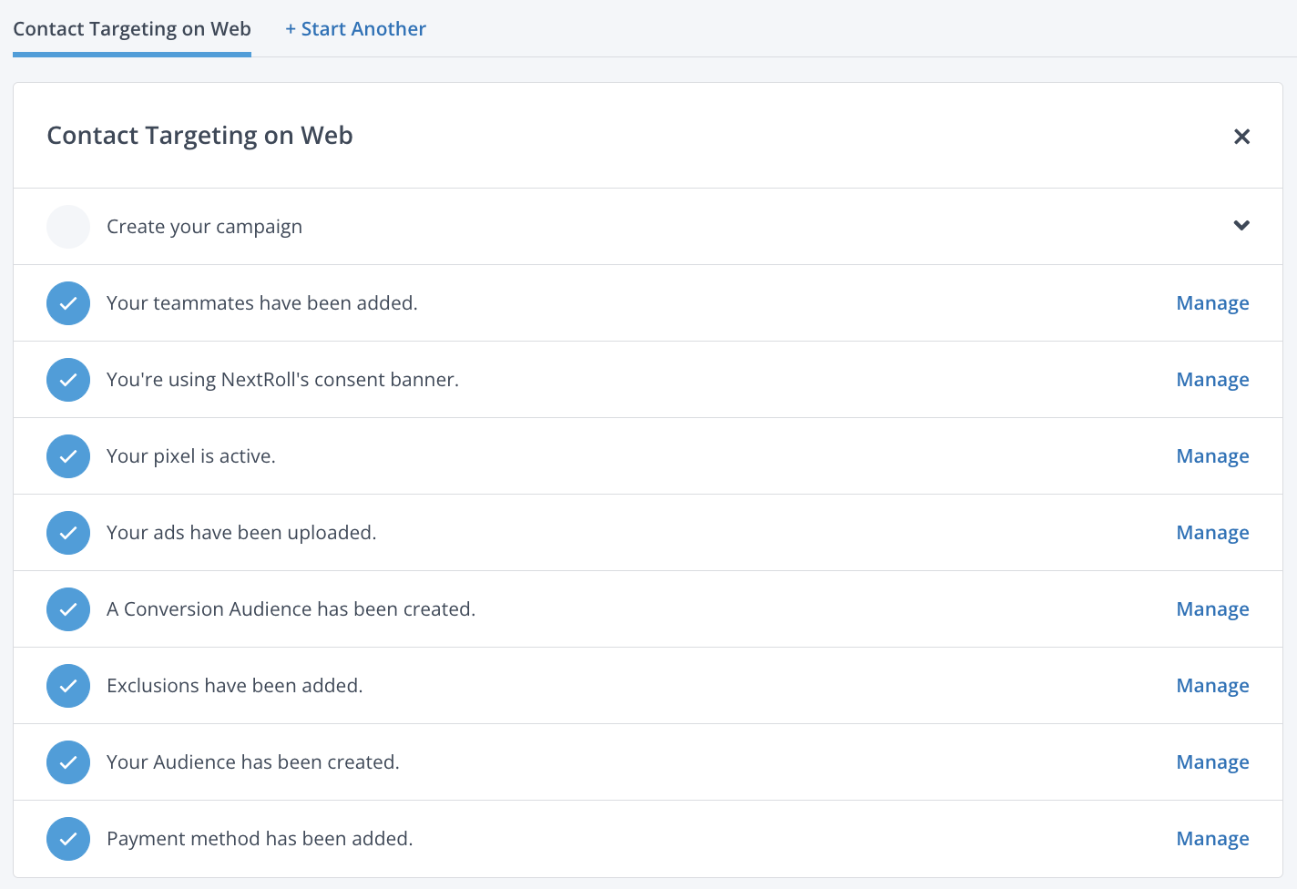 The Homepage is a feature within our product that will provide a comprehensive checklist in real-time and give insight into progress and item completion in order to get your program set up with the AdRoll ABM platform. The homepage will serve as a guide and resource during Onboarding and throughout your time with the AdRoll ABM platform. The homepage will continue to grow with you as you launch and expand your ABM program.