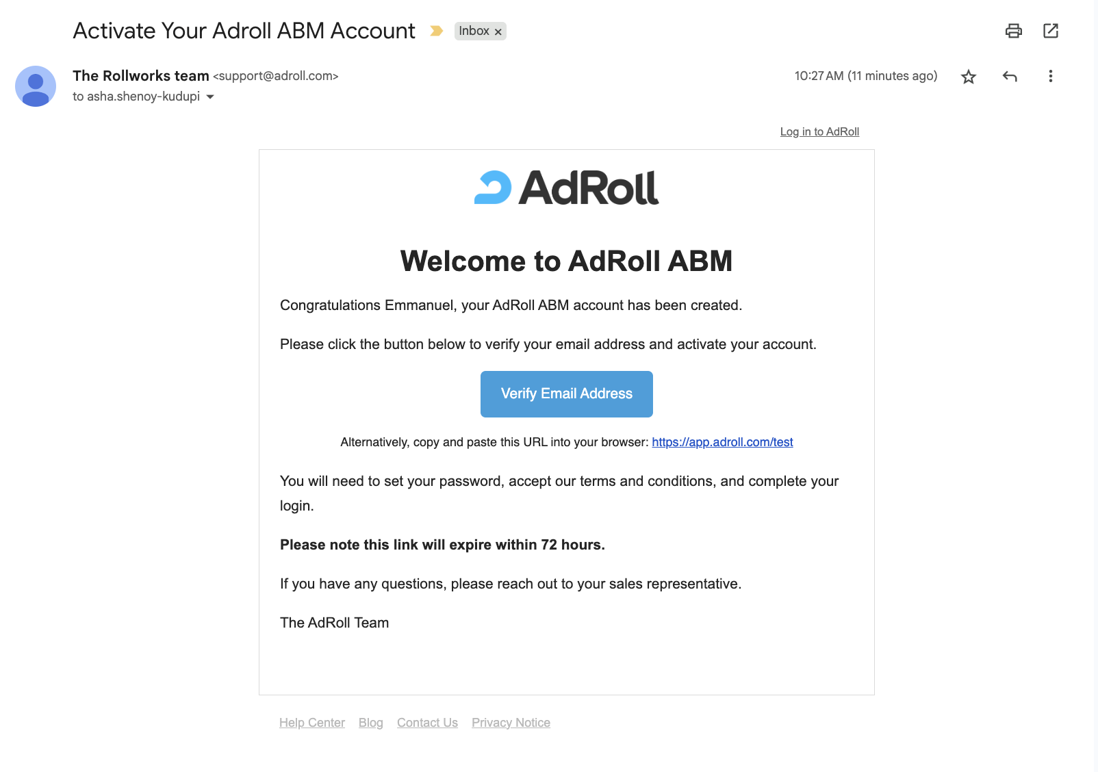 When you sign up for the AdRoll ABM platform for the first time, or when you update your email address, you are required to verify your email address in order to activate your account so that we can maintain your account security.