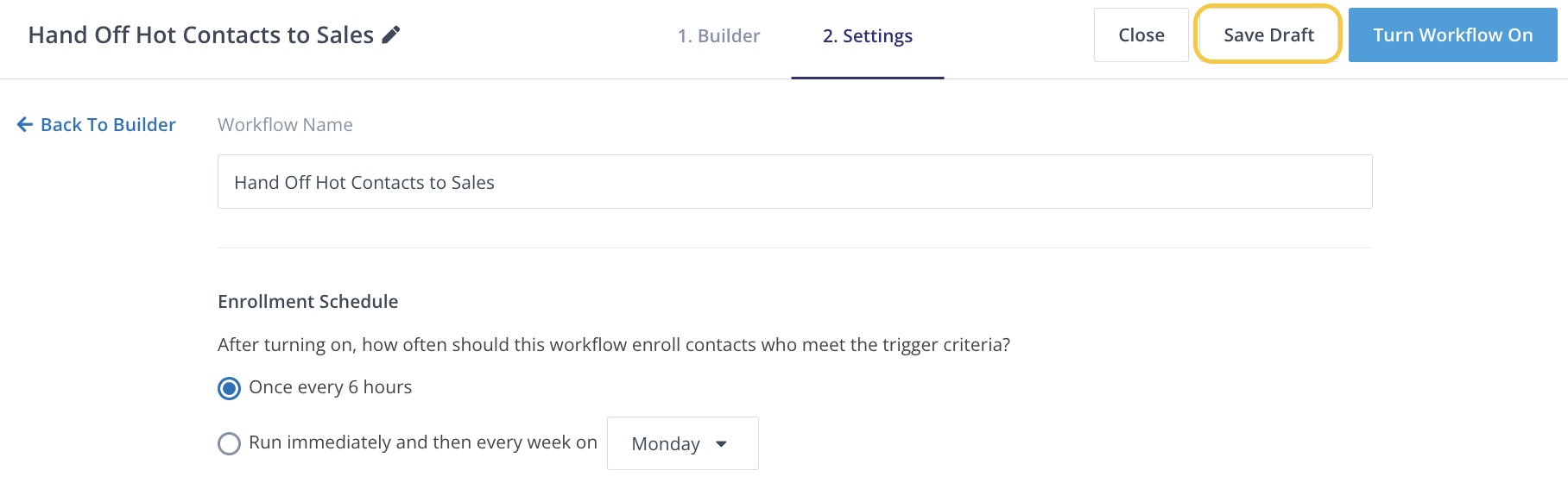 You can adjust your Workflow trigger, action and settings and save as a draft to launch at a later date.