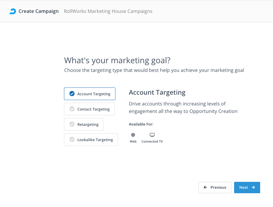 - Select Account Targeting as your marketing goal and click Next.