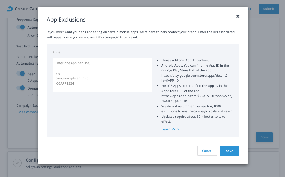 - Enter App IDs associated with the mobile apps that you do not wish to target: