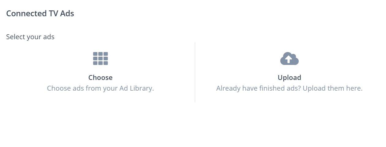 - Create at least one set of CTV video ads. Your ads must meet AdRoll’s CTV Ads Format Guidelines.