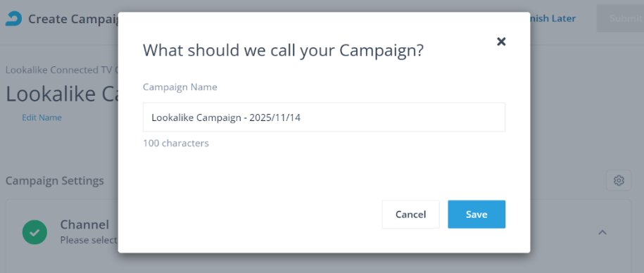 Step 2: Create a CTV Lookalike Targeting Campaign