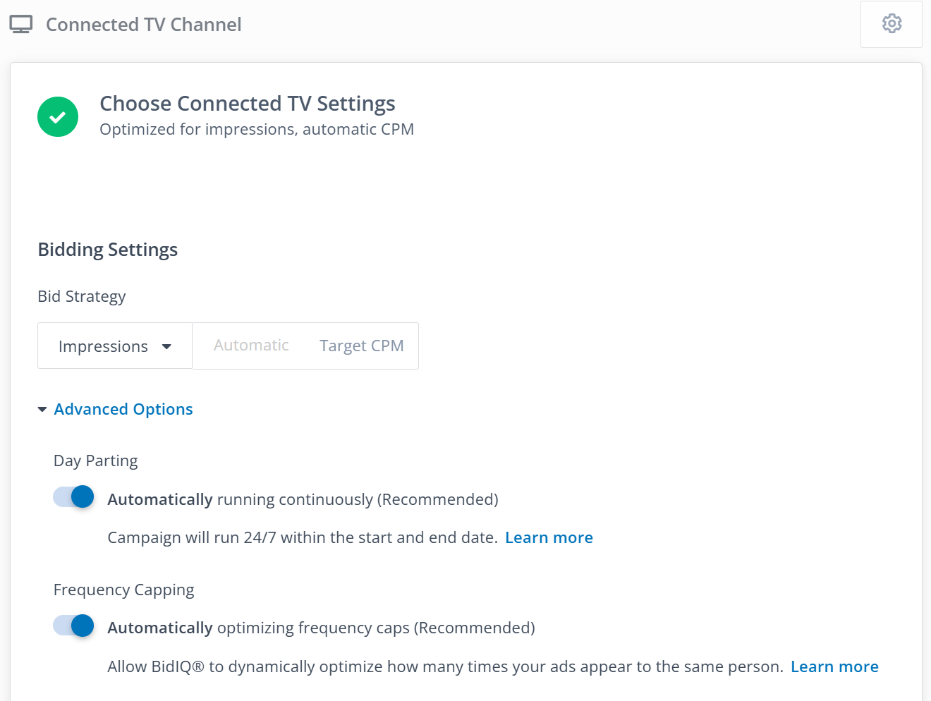 - Leave Target CPM blank to let BidIQ automatically maximize impressions within your budget.