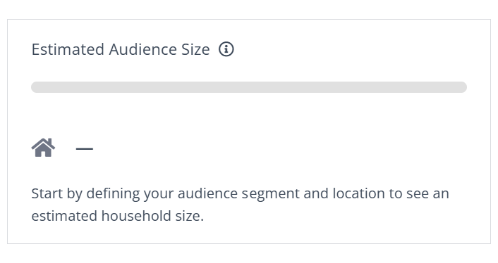 After selecting your audience segments and location filters, this widget will show you the estimated size of the number of households eligible to see your CTV ads. These numbers may change over time depending on how many users do we track in your selected audience and the audience duration.