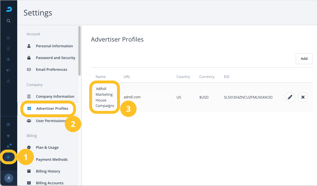 If you don't know the name of each Advertiser Profile, you can find the name of each profile by navigating to Settings > Advertiser Profiles.