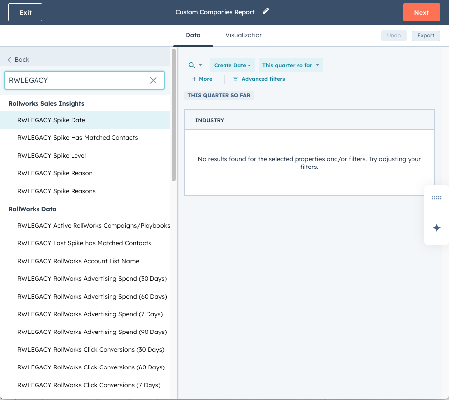 To quickly find the newest AdRoll ABM custom properties when building reports, configuring automations, or customizing layouts: