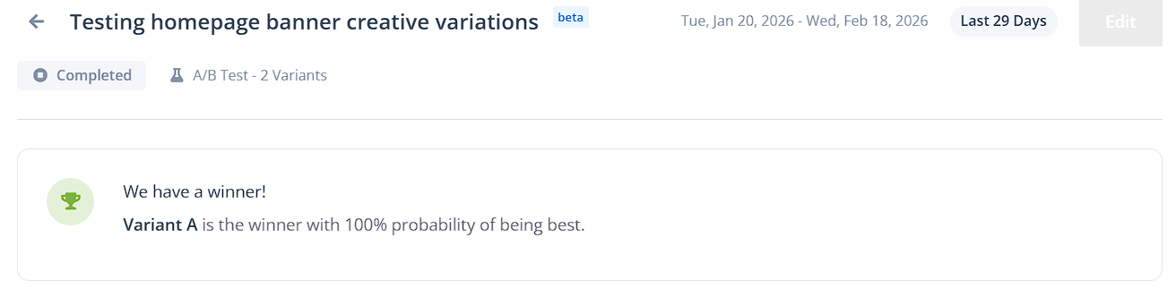 - Action: You’ll see a "Winner" badge on the top-performing variant. You can now confidently shift your full budget to this creative or use its design elements as a blueprint for future campaigns.