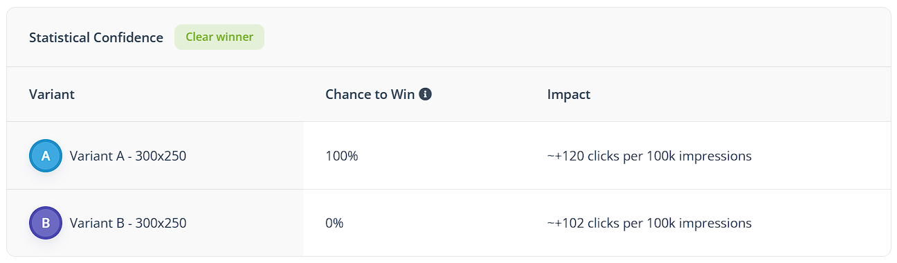 What it means: One variant is performing significantly better than the other, and we have enough data to be confident that this isn't just a fluke.