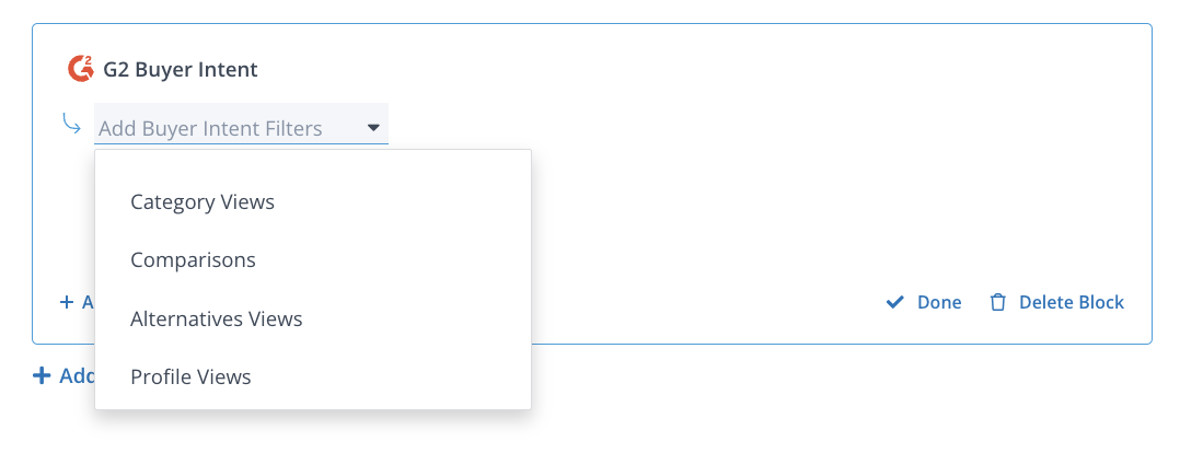 Once you complete the G2 Integration you can use G2 Buyer Intent data in the following features: