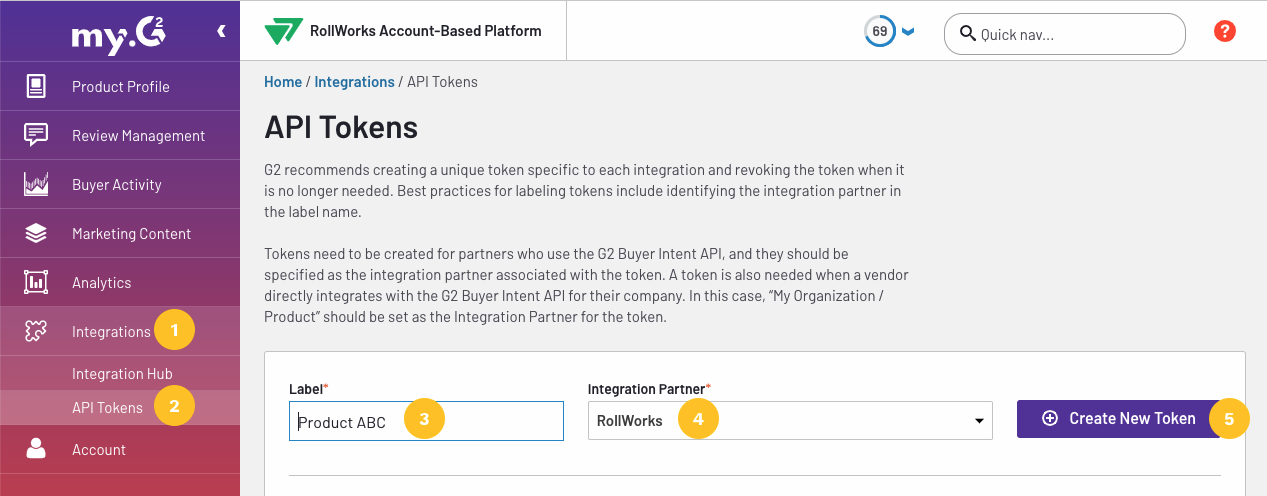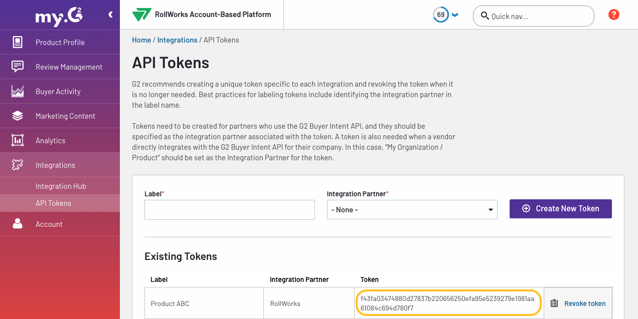If you have multiple product lines of G2 Buyer Intent, you will need to create multiple API Tokens in G2, and complete the steps to connect your G2 Account to the AdRoll ABM platform for each additional G2 profile you want to add.