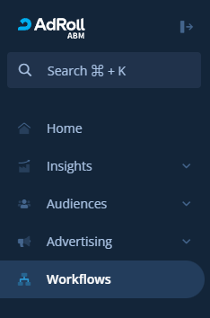 AdRoll Workflows is a feature that allows you to automate your go-to-market (GTM) strategy, leveraging data and insights from us across your connected systems with a built-in orchestration tool that brings your GTM tech stack together.