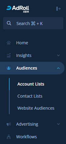 - Account Lists: Lists of companies that you would like to target because they match your ICP, are engaging with your site, or are demonstrating intent.