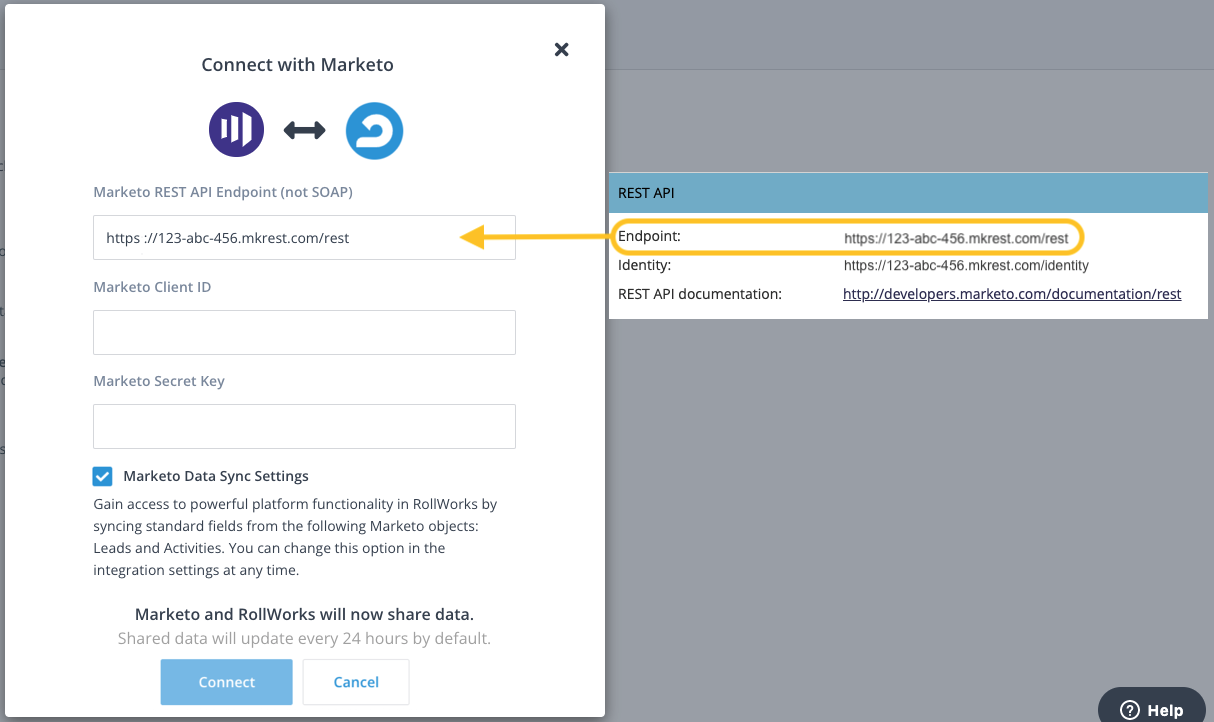 - Copy and paste the REST API Endpoint from Marketo to the AdRoll ABM platform.