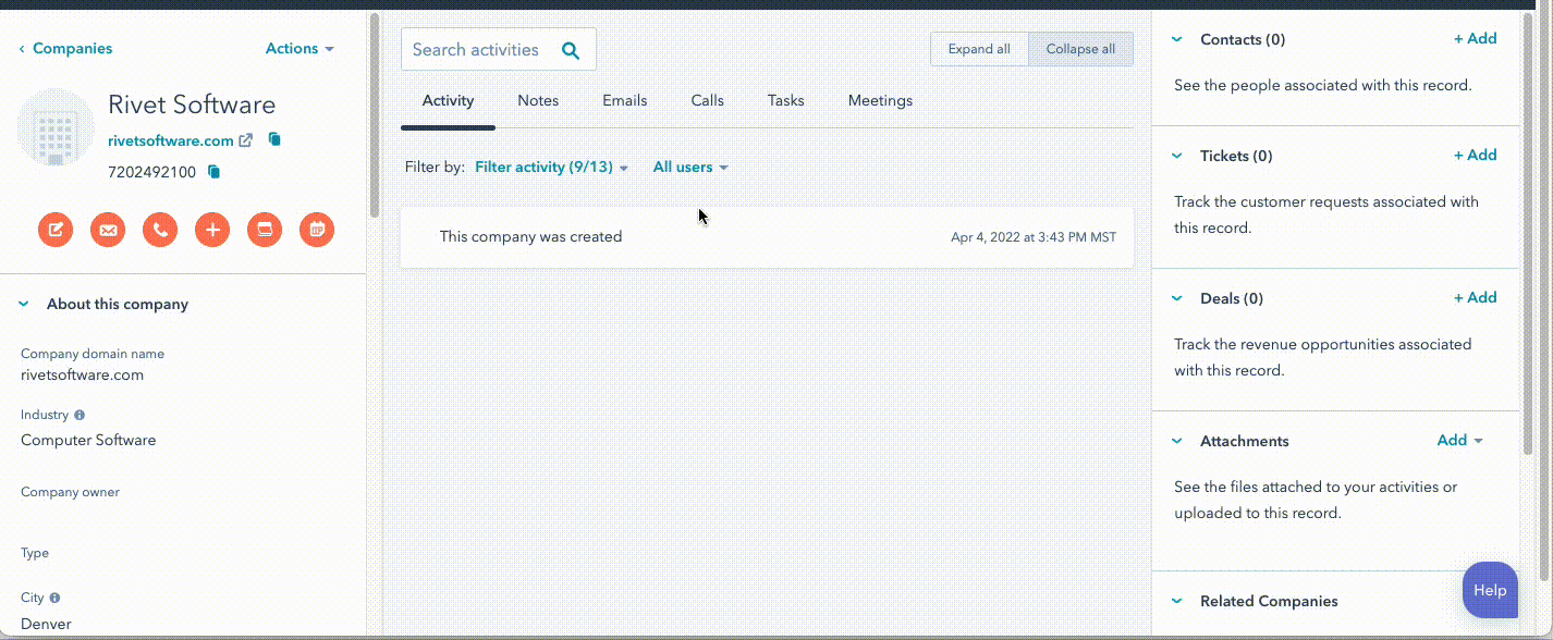 By default, the Sales Insights CRM card will be placed on the bottom right-hand side of your Company records in HubSpot. If you plan to look at and use our data on a regular basis, we suggest that you move the CRM card up for quick access when looking at any Company records in HubSpot. Each individual HubSpot User can customize their Sales Insights CRM Card placement.